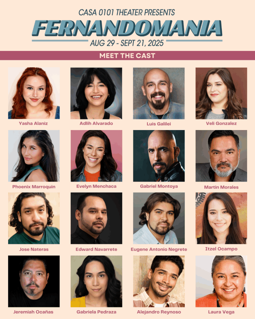 FERNANDOMANIA  is  performed in English and/or Spanish with supertitles and is recommended for all ages – from niño to viejo! It is directed by Emmanuel Deleage, Carmelita Maldonado, Karla Ojeda and Vance Valencia with a cast featuring Adlih Alvarado, Yasha Alaniz, Luis Galilei, Veli González, Phoenix Marroquin, Evelyn Menchaca, Gabriel Montoya, Martín Morales, Jose Nateras, Edward Navarrete, Eugene Antonio Negrete, Itzel Ocampo, Jeremiah Ocañas, Gabriela Pedraza, Alejandro Reynoso and Laura Vega.